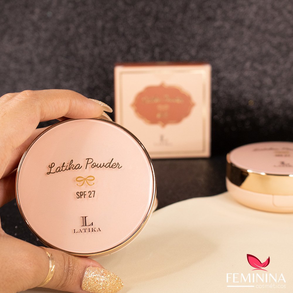 Aplique uma fina camada do pó compacto Latika Powder SPF 27 diretamente sobre a